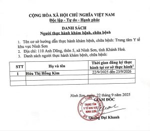 by: qcv ĐÀO TẠO, TẬP HUẤN 0 2025-09-22 10:43:12 Danh sách người thực hành khám bệnh, chữa bệnh Tags: No Tag
